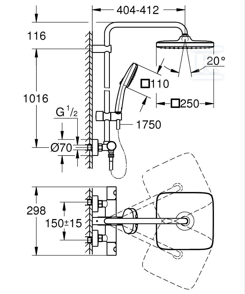 - optionele upgrade: GROHE EasyReach tray (26 362), niet inbegrepen