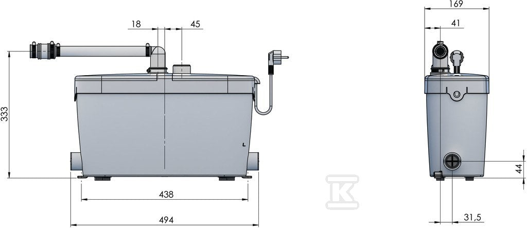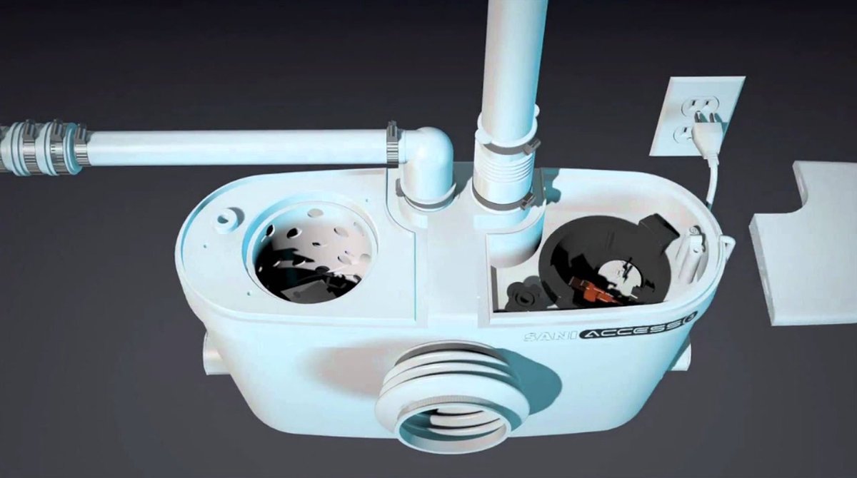 Sanibroyeur SaniAccess Pump vuilwaterpompunit, reservoir kunststof, nom. debiet 2.9m-/h, opvoerhoogte bij nom. debiet 50kPa, kwaliteitsklasse reservoir ABS, pomphuis vezelversterkt kunststof, kwaliteitsklasse pomphuis vezelversterkt kunststof, inhoud reservoir 8.8L, 1 pompen,