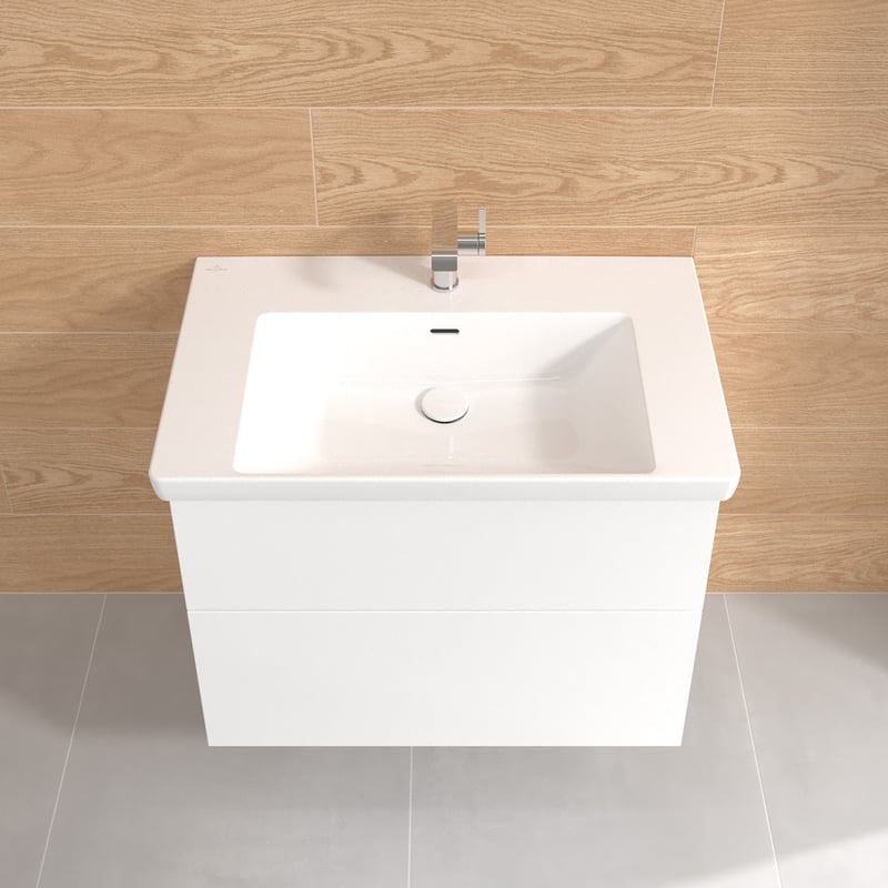 Villeroy & Boch Embrace wastafel met badmeubel, 2 uittrekbare compartimenten, puur wit, wastafel wit, met CeramicPlus, met 1 kraangat - Productinformatie
